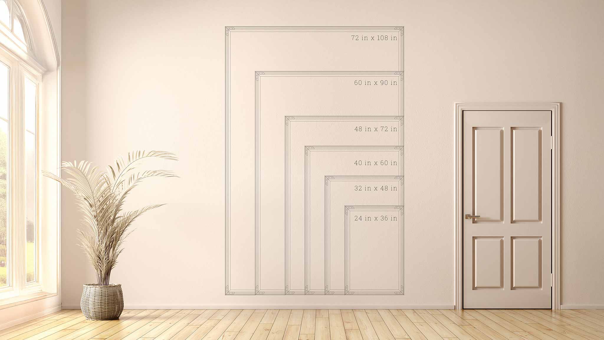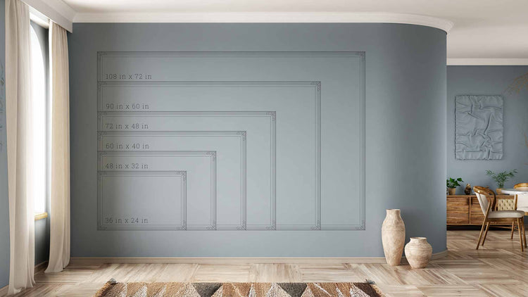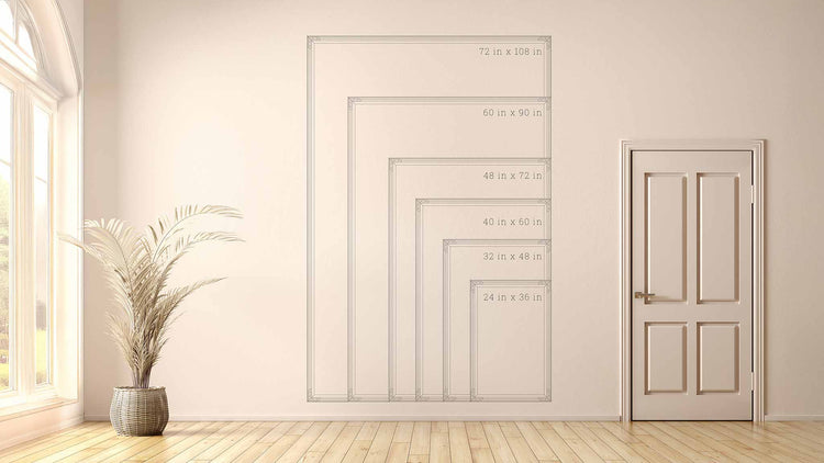 Not sure what size to choose? Use these room mockups to see how each size looks on a real wall. All our artwork is available in every size listed below.