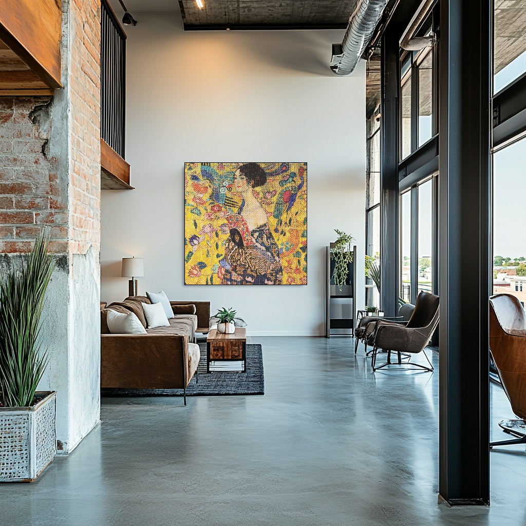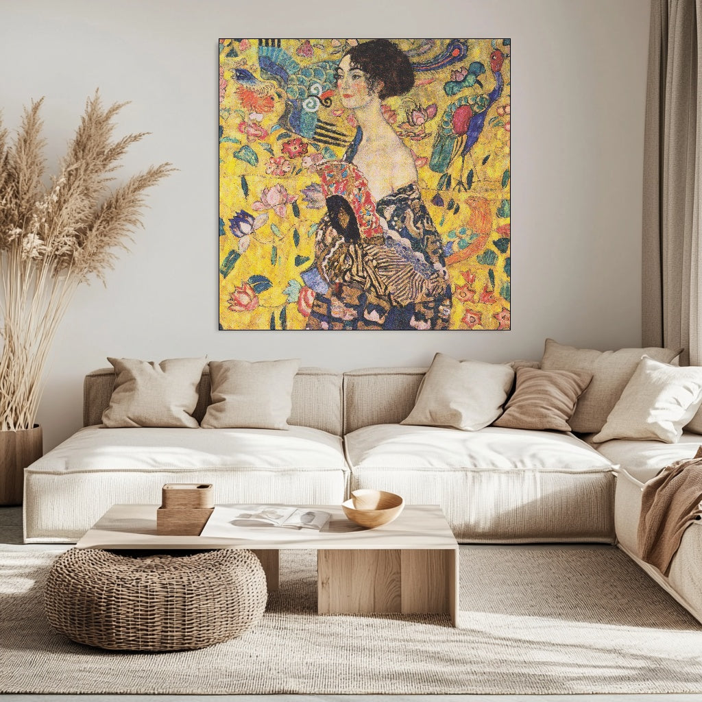 “Lady with a Fan,” a captivating masterpiece by Gustav Klimt, epitomizes the allure of the Symbolism period. Painted in 1917-1918, this stunning work features a mysterious woman adorned in luxurious patterns and vibrant colors, holding an ornate fan that invites intrigue. Klimt’s signature gold leaf embellishments and intricate detailing create a mesmerizing interplay of light and texture, while the woman's enigmatic expression draws viewers into her world. This artwork not only reflects Klimt's innovative style but also encapsulates the themes of femininity and sensuality, making it a must-have for art enthusiasts and collectors alike.