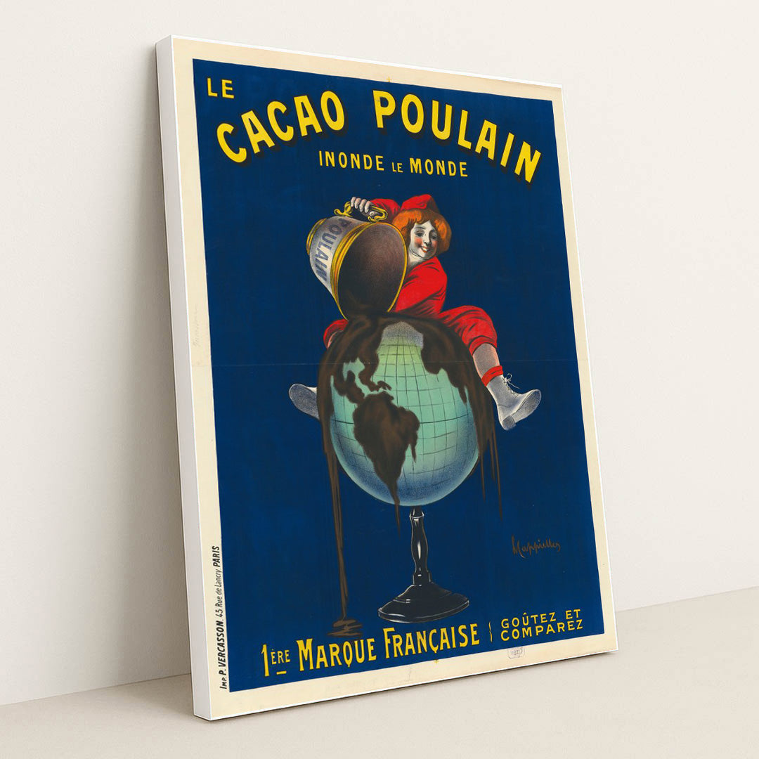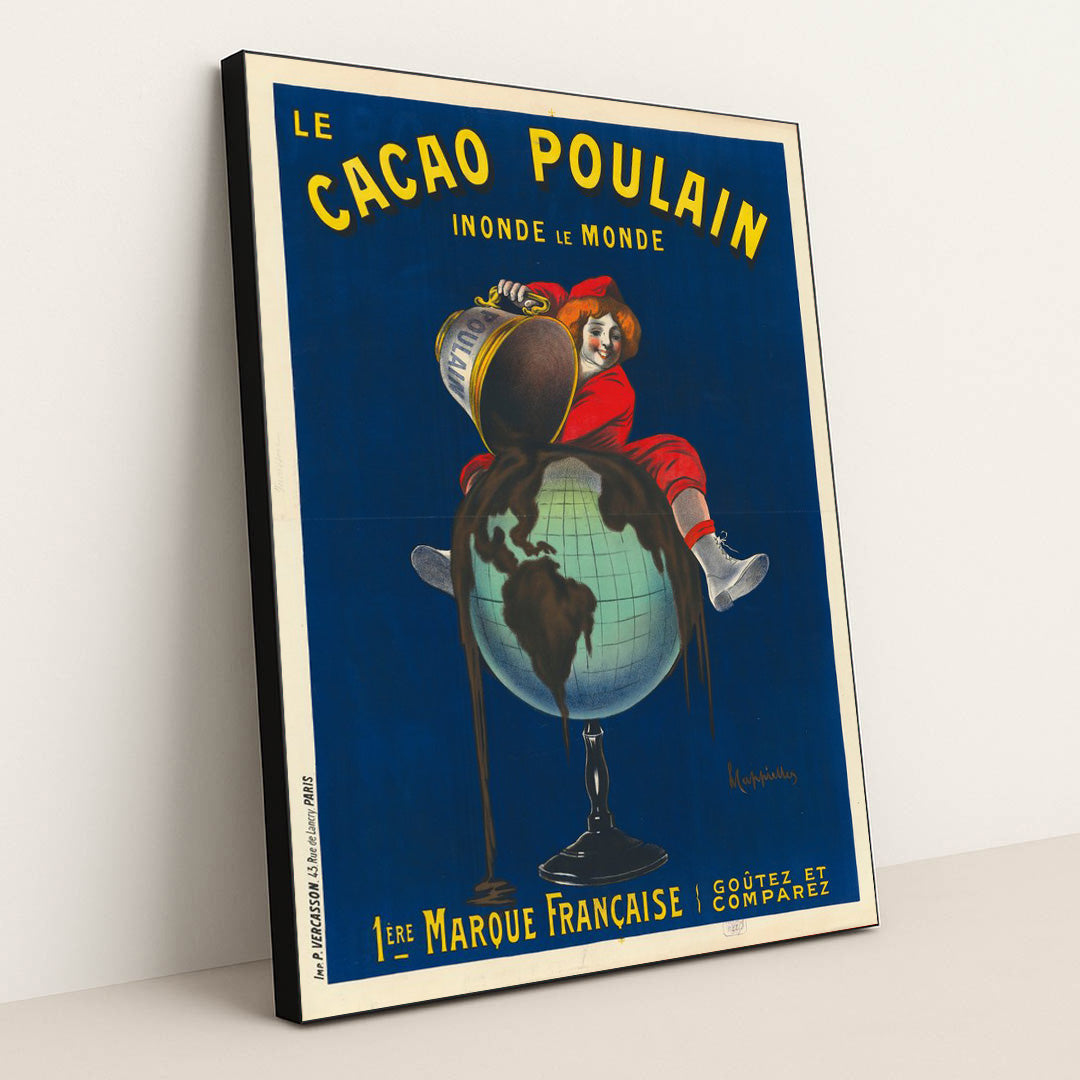 "Le Cacao Poulain (1911)" by Leonetto Cappiello is a captivating piece that exemplifies the vibrancy and innovation of early 20th-century advertising art. This striking lithograph features a whimsical depiction of a joyful, anthropomorphic cacao bean, radiating energy and delight. Cappiello's masterful use of bold colors and dynamic composition draws the viewer's eye, embodying the essence of indulgence associated with chocolate. As a hallmark of the Belle Époque era, this artwork not only celebrates the charm of cacao but also showcases Cappiello's pioneering approach to commercial art, making it a must-have for collectors and enthusiasts alike.