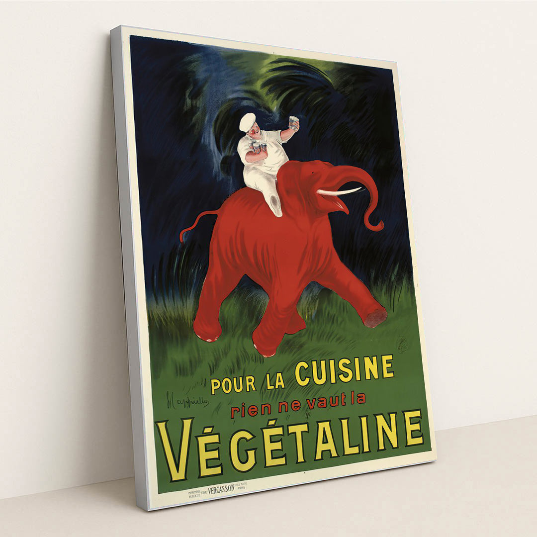 Immerse yourself in the vibrant world of Leonetto Cappiello's 'Végétaline', an exquisite gem from the Advertising period that masterfully blends art and commerce. This striking poster captures the essence of early 20th-century marketing with its dynamic colors and bold composition, showcasing a graceful figure enveloped in lush, botanical elements, symbolizing the natural ingredients of the product. Cappiello's distinctive style, characterized by lively imagery and a touch of whimsy, invites viewers to celebrate the allure of Végétaline, an early vegetable-based margarine. A true conversation starter, this artwork is perfect for collectors and enthusiasts seeking to enhance their space with a piece of advertising history.