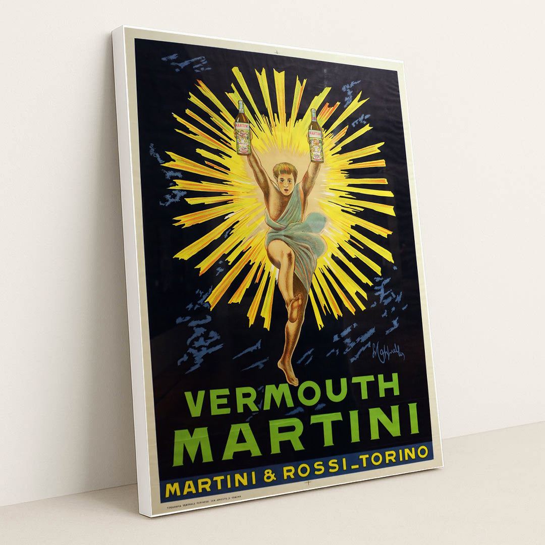 Step into the vibrant world of early 20th-century advertising with Leonetto Cappiello's captivating work, "Vermouth Martini (1920)." This striking lithograph masterfully combines bold colors and dynamic composition to evoke the sophistication and allure of the cocktail culture of its time. Cappiello's whimsical portrayal of a lively martini, accompanied by enchanting typographic elements, invites viewers to indulge in the pleasures of life. As a quintessential example of Art Deco design, this artwork not only celebrates the essence of vermouth but also serves as a testament to Cappiello's genius in elevating commercial art to new heights. Perfect for collectors and enthusiasts alike!